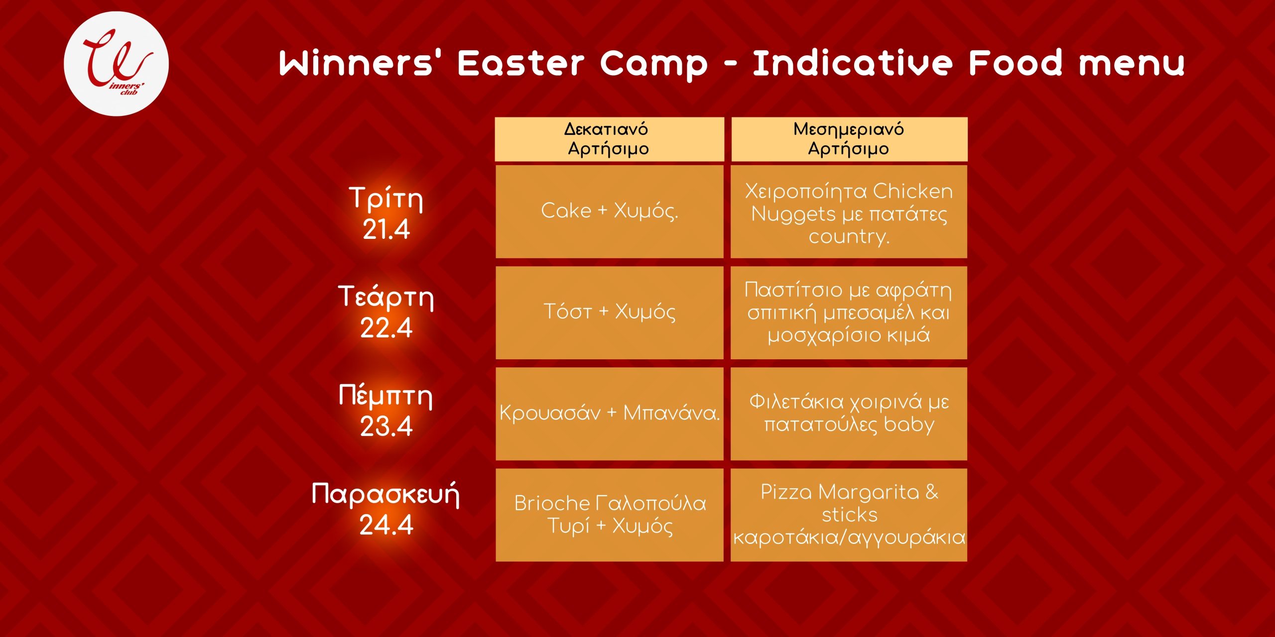 Εναλλακτικά μπορείτε να καλέσετε στο 210-6083021 ή μπορείτε να μας στείλετε e-mail: camp@winnersclub.gr