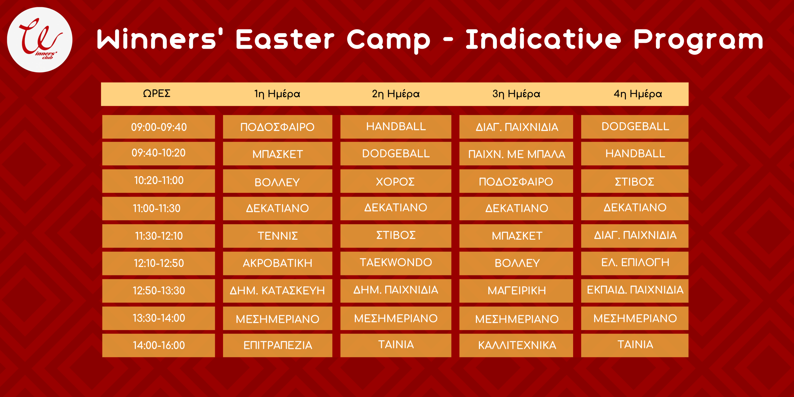 Το Winners’ Easter Camp 2026 επιστρέφει δυναμικά, προσφέροντας στα παιδιά μια μοναδική πασχαλινή εμπειρία γεμάτη παιχνίδι, αθλητισμό και δημιουργικότητα, μέσα σε ένα ασφαλές και οργανωμένο περιβάλλον.